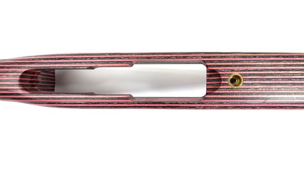 10/22 Sporter Stock. made for a Ruger, .22 LR, Laminate Pink Black, black plastic butt pad and brass bushing - escutcheon. ***Receives a CONTOUR barrel and plastic end (not included), OAL 29 1/2". Note: This stock may have blemishes or imperfections from years of bulk storage.