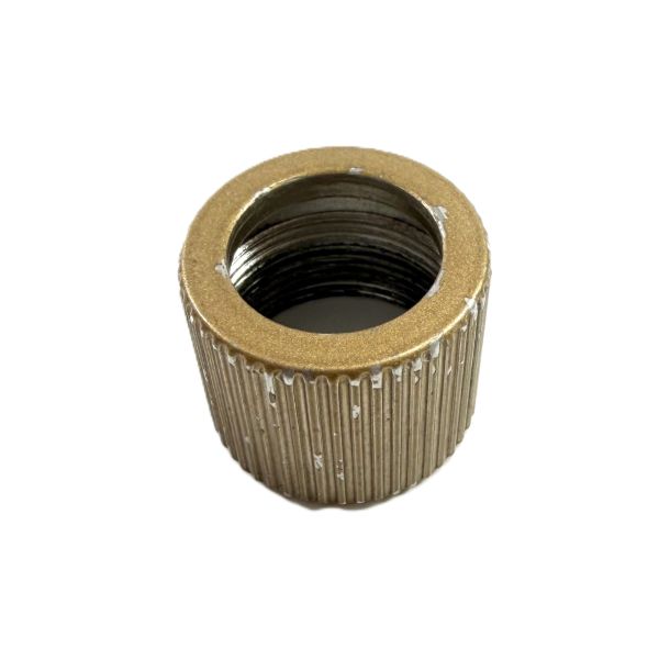 Original Charter Arms Aluminum Barrel Nut with Gold Finish. Limited supply! Note: This new, original part has finish scratches, chips, blemishes and/or imperfections from years of very loose storage and varies from barrel nut to barrel nut *** Clearance, Final Sale Item